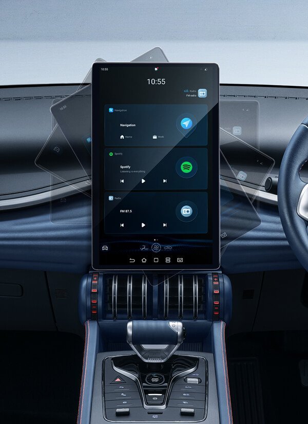 Terinspirasi dari bulu, desain lampu siang hari terlihat elegan dan selaras dengan elemen kumis naga, mirip dengan naga yang terbang dengan gagah. Teknologi pencahayaan unik ini memperlebar cahaya hingga 16,7 meter, jauh melebihi standar sejenis, sehingga meningkatkan pengalaman berkendara di malam hari. Saat dibuka atau ditutup, lampu depan dan belakang LED menunjukkan efek cahaya bernafas yang perlahan menyala, seperti naga yang terbangun untuk pertama kalinya.